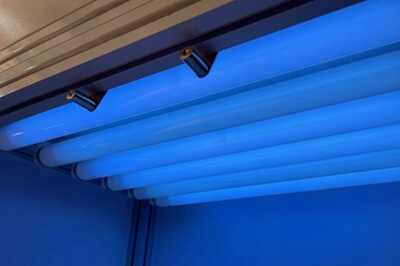 UVA-340 最佳地模擬太陽光從 365nm 到截止點 295nm 關鍵紫外短波區(qū)域。它的發(fā)光光譜能量主要集中在 340nm 的波長 處,即為 UVA-340 燈管。